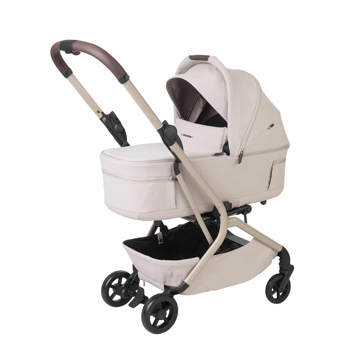 עגלה קומפקטית עם סל שכיבה שמתקפל לשימוש קל ונוח ברכב או ברכבת או במטוס.
