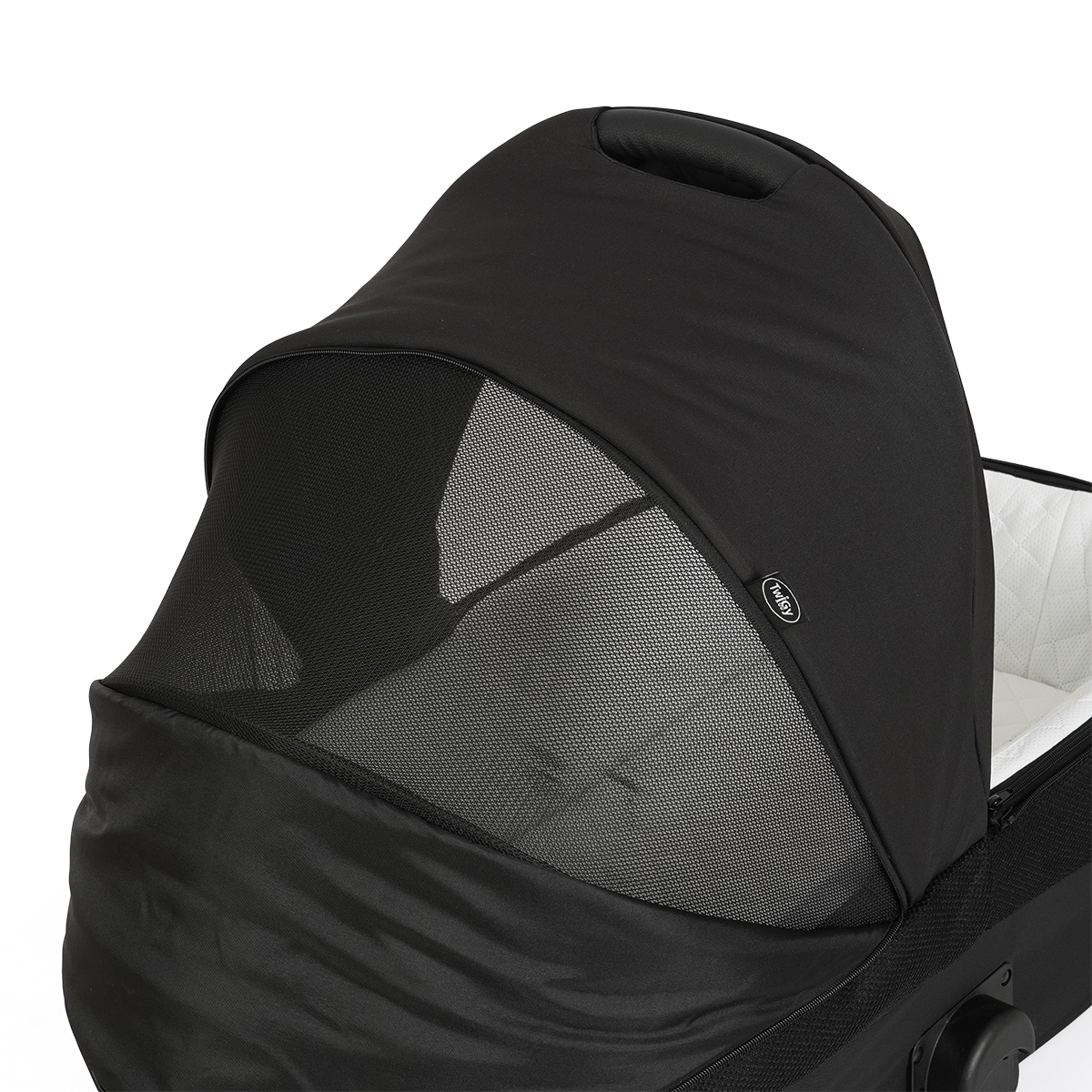 הגגון וגב המושב מצוידים בפתחי רשת רחבים לזרימת אוויר נעימה, קשר עין ישיר עם התינוק, והגנה מלאה מהשמש.