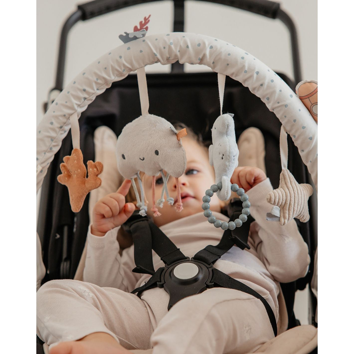 קשת פעילות רכה לעגלה בעלת 6 צעצועים התפתחותיים מבד.