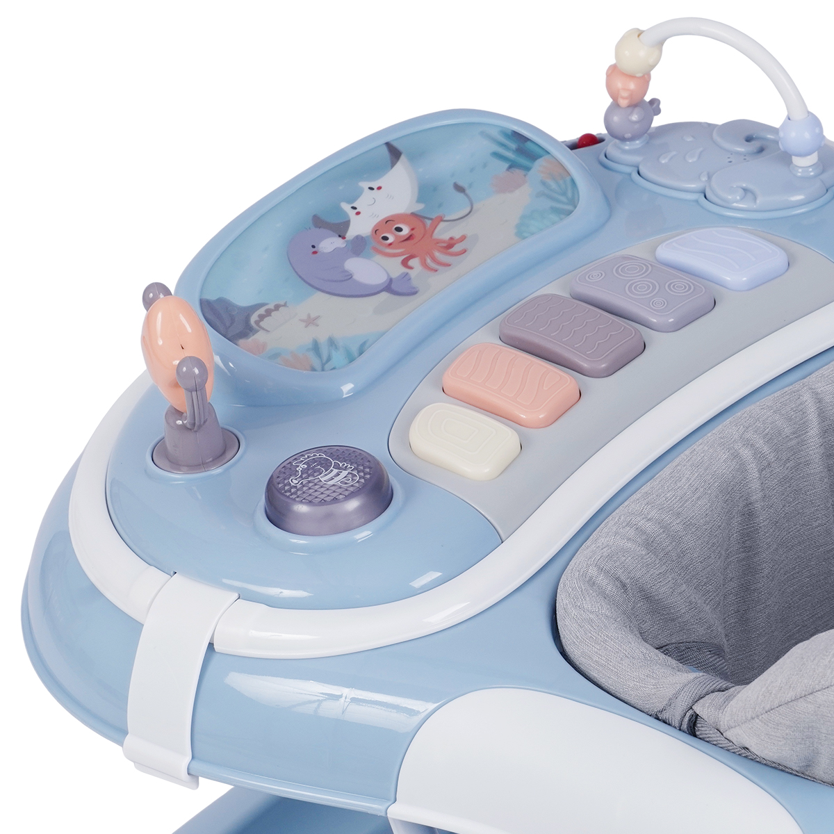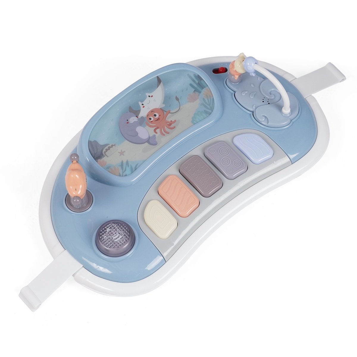 • מגש פעילות אינטראקטיבי המפתח מיומנויות שמיעה ותיאום קשר עין-יד, ופעילות מוטורית עדינה. המגש כולל צעצוע נע, אורות ומוסיקה, קלידי פסנתר המפיקים צלילים, משחק חרוזים
