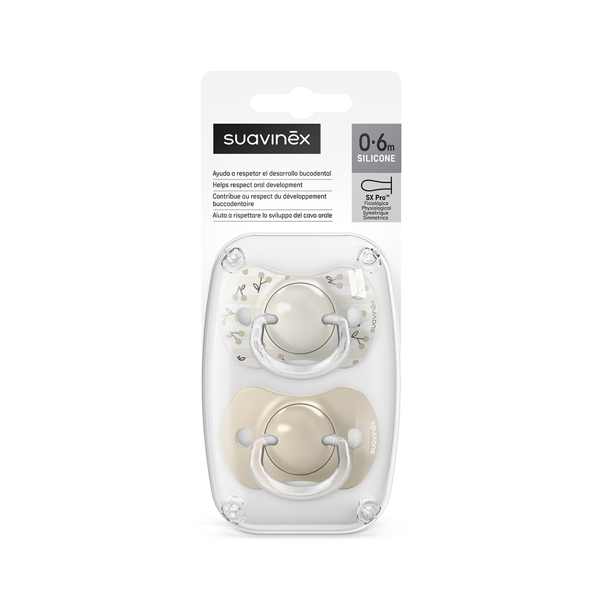 זוג מוצצי 0-6 SX PRO מיני, פותח ותוכנן במיוחד על ידי אורתודנטים ומומחים עבור הרגעים הראשונים של החיים, לניובורן ואף לפגים.