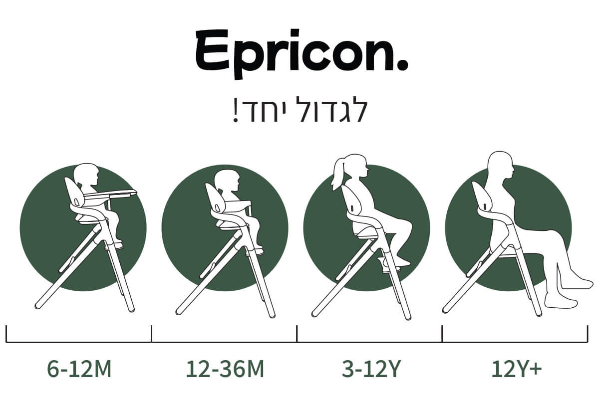 כיסא אוכל Epricon גדל עם ילדכם ומותאם לצרכים המשתנים של המשפחה, מוצר אחד שילווה את ילדכם מגיל חצי שנה ועד לבגרות. מבטיח נוחות, בטיחות וסטייל מרהיב. הכיסא יאפשר לילדכם להצטרף לארוחות משפחתיות ולאינטראקציה חברתית ולטפח את עצמאותו.