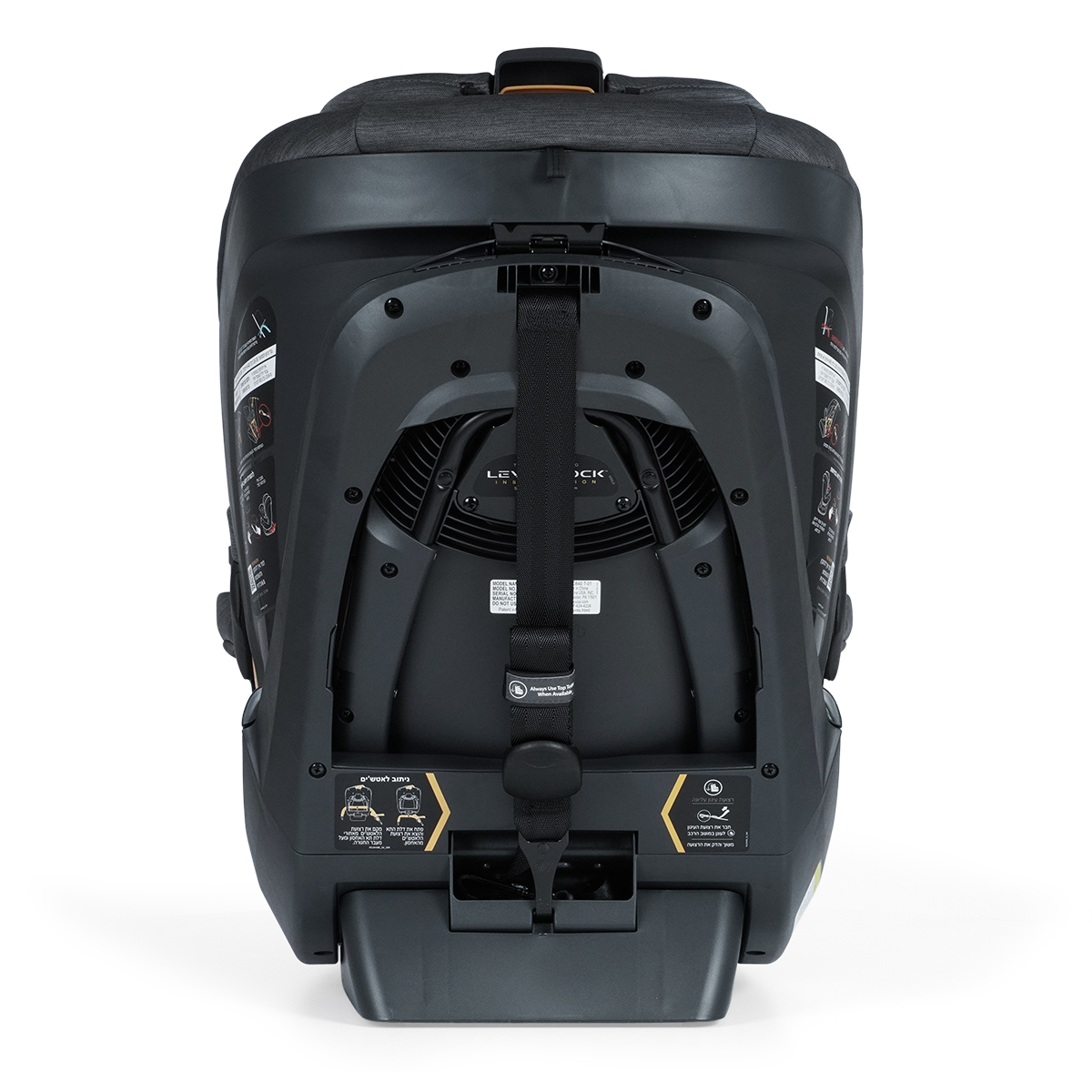 • מנגנון החגירה המובנה כולל מערכת הידוק רצועות עצמית בעלת שלוש נקודות מגע לשימוש רציף מהתקנה נגד כיוון הנסיעה ועד להתקנה עם כיוון הנסיעה
