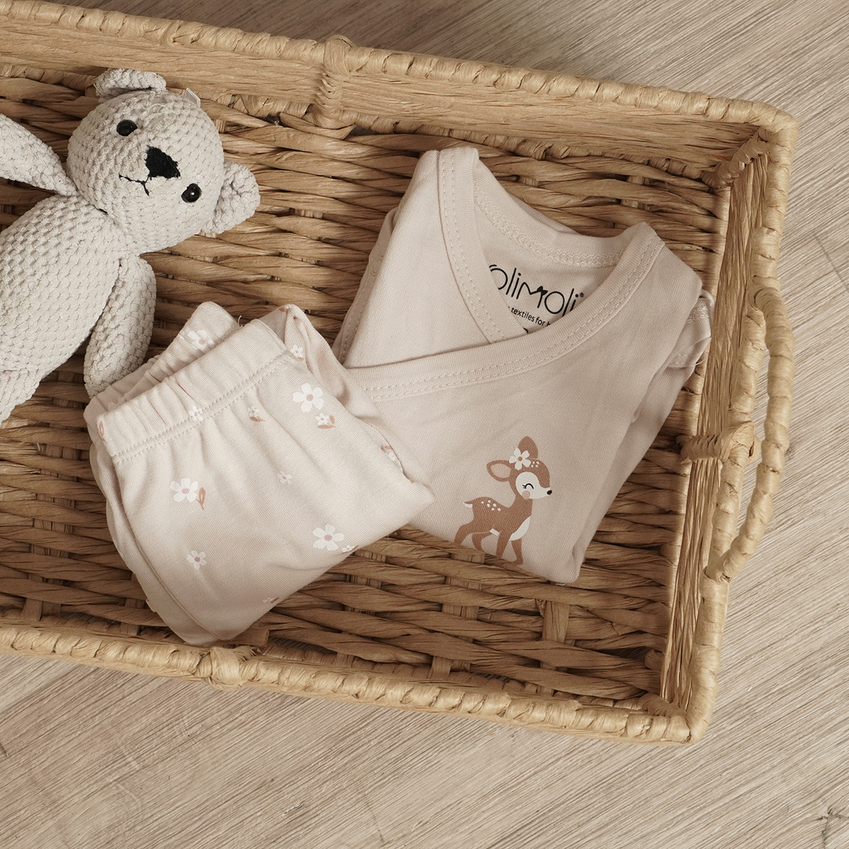 הביגוד בסגנון יומיומי מושלם לכל אירוע, הבדים רכים ונעימים למגע באיכות פרמיום, שילוב של כותנה וסיבי במבוק המתאימים להיות במגע עם עורו העדין של התינוק, הבד נושם ואוורירי, סופג לחות ומווסת טמפרטורה.