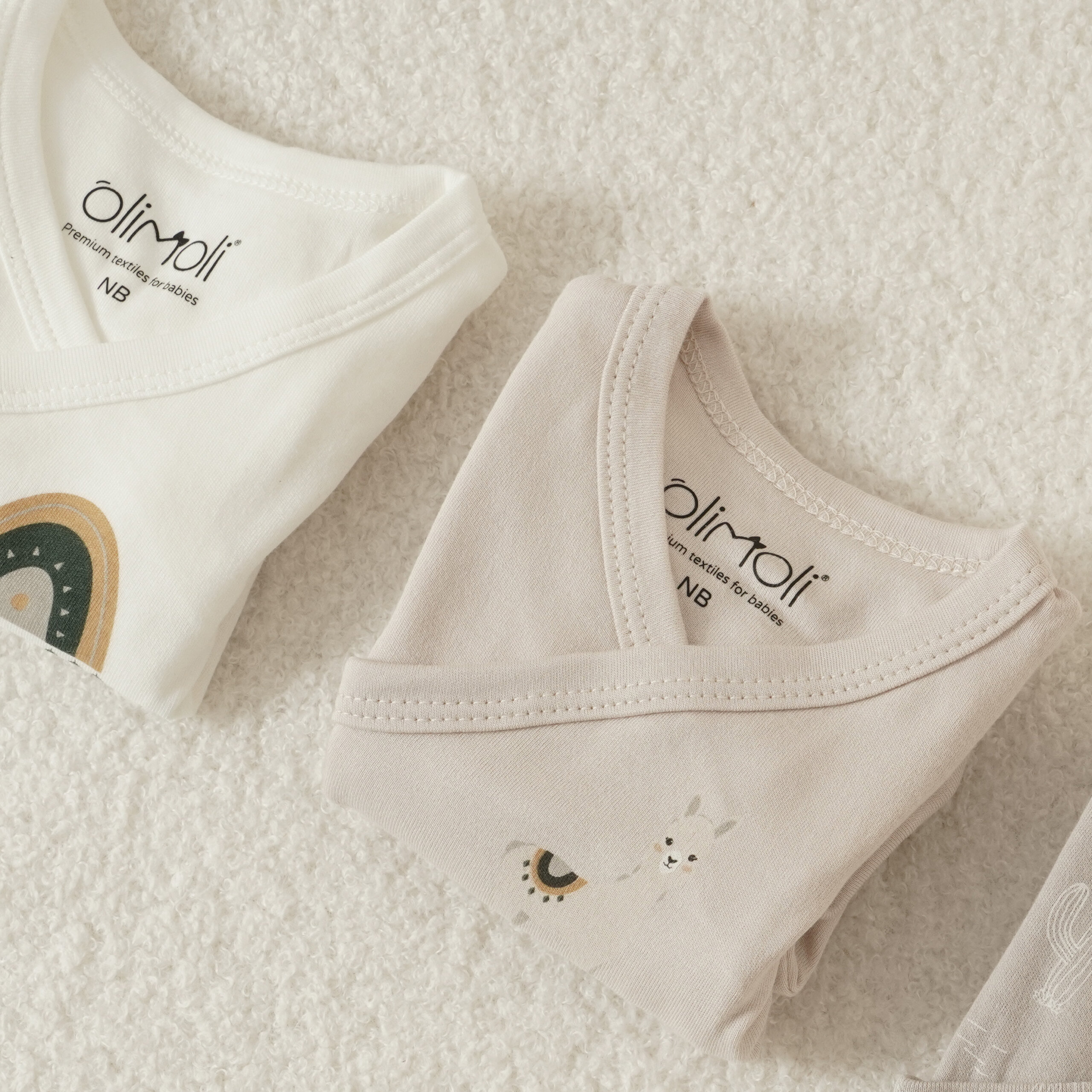 הביגוד בסגנון יומיומי מושלם לכל אירוע, הבדים רכים ונעימים למגע באיכות פרמיום, שילוב של כותנה וסיבי במבוק המתאימים להיות במגע עם עורו העדין של התינוק, הבד נושם ואוורירי, סופג לחות ומווסת טמפרטורה.