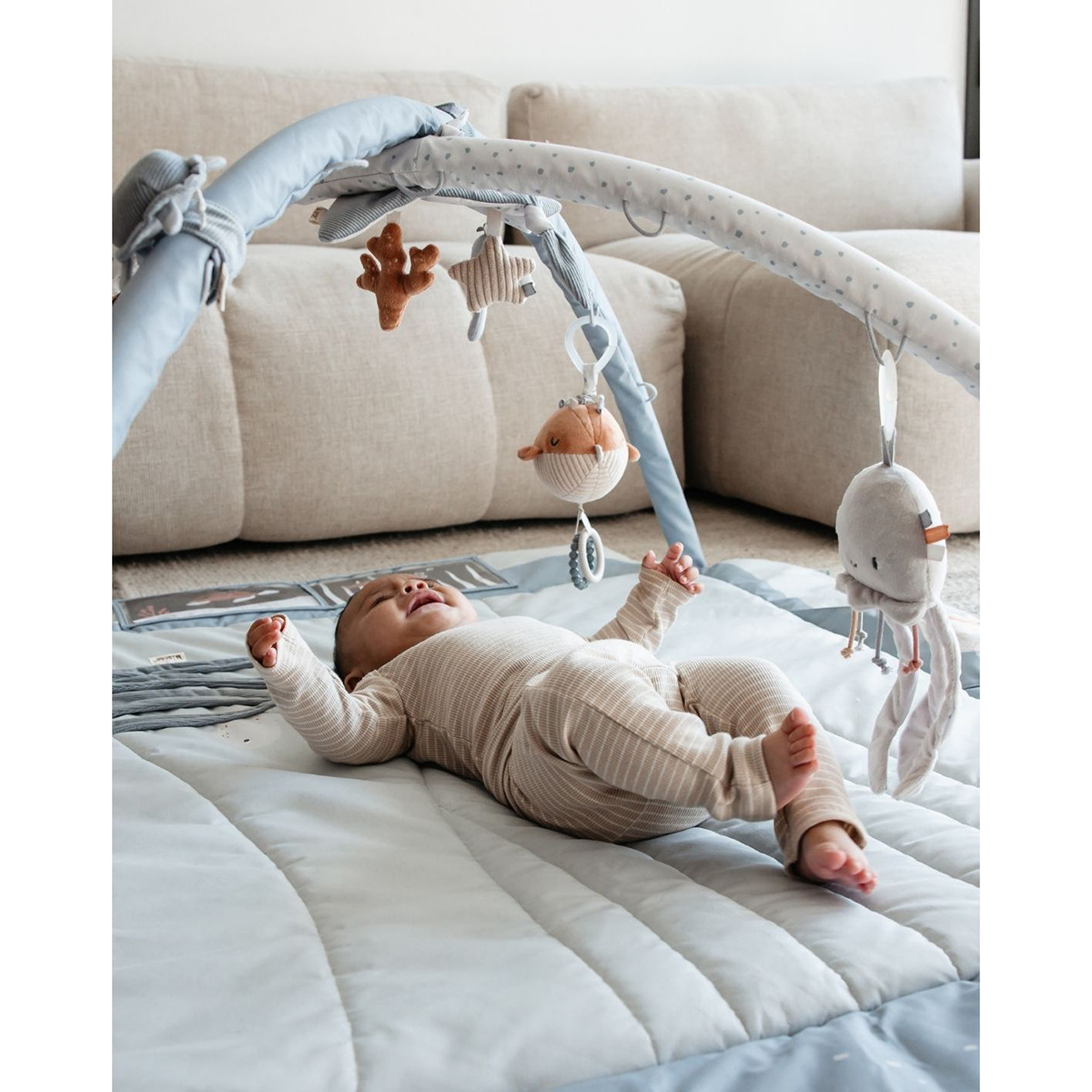 מובייל עם מראה בטיחותית צמידי יד ורגל צבעוניים ומרשרשים ועוד בובות וצעצועים עם גירויים המותאמים במיוחד להתפתחותו המוטורית והקוגנטיבית של התינוק.