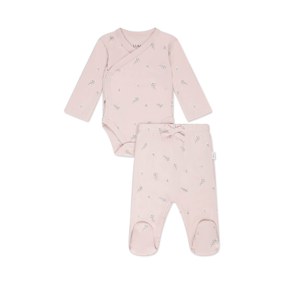 סט בגד גוף ומכנסיים לו&מי ורוד מודפס – LU&ME