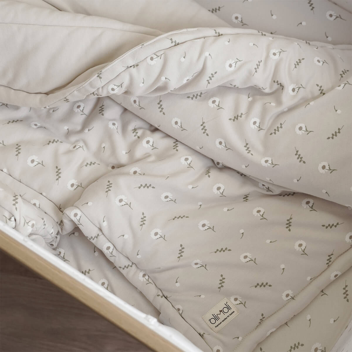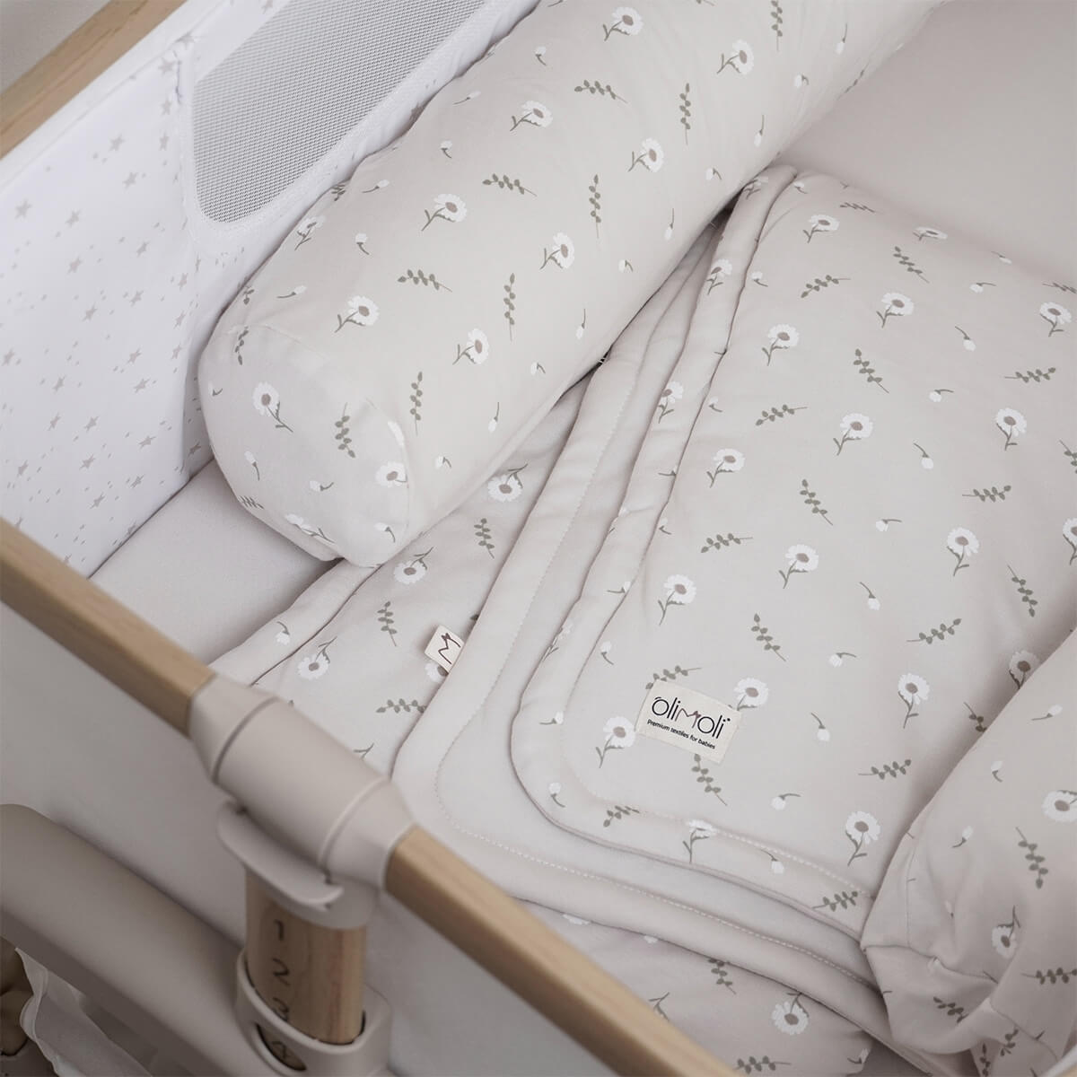 סט מצעים לעריסה נצמדת אולימולי ליין פריחה לבנה – Olimoli White Blossom Open Side Crib Set