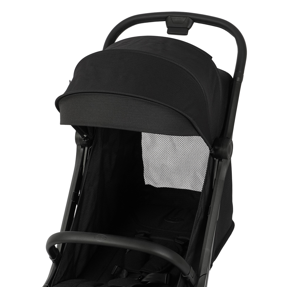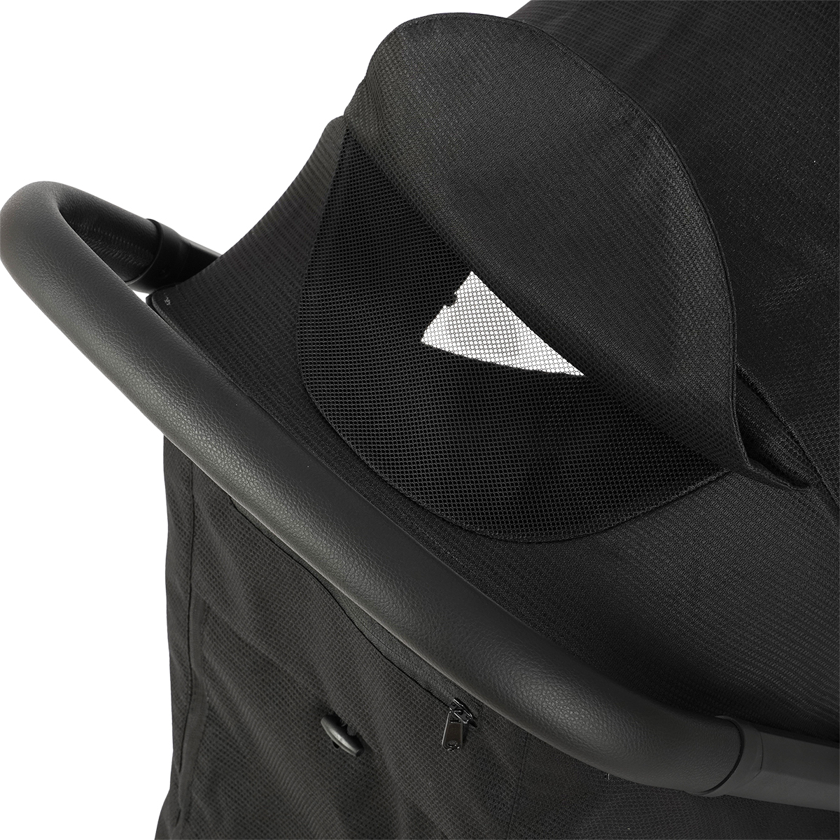 לעגלה גגון רחב במיוחד המספק הגנה מושלמת מהשמש וחלון הצצה, כולל דופן רשת נפתחת בגב העגלה על מנת לאפשר זרימת אוויר נעימה לתינוק.