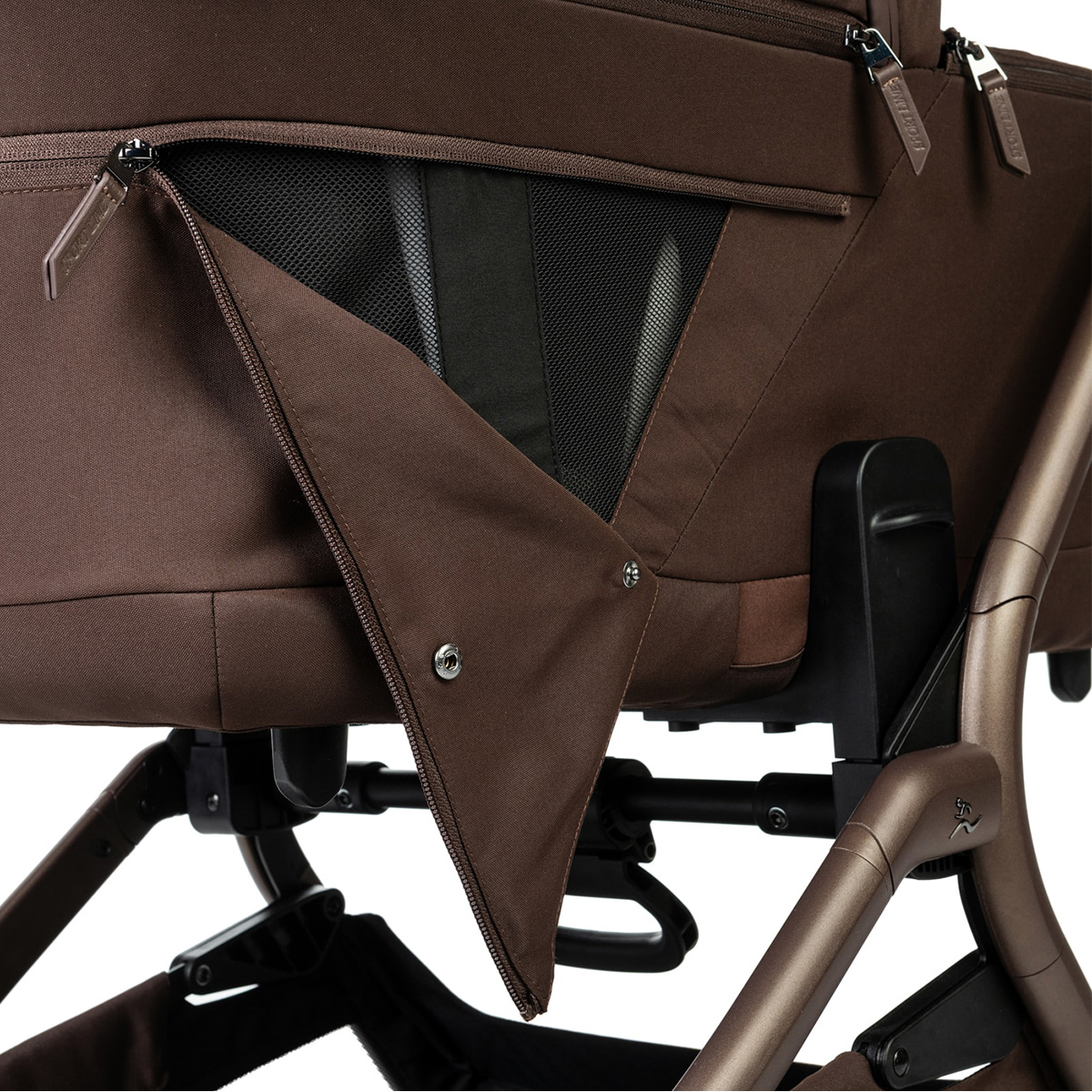 - פתח אוורור גדול במיוחד בגגון סל השכיבה ניתן לסגירה בעזרת רוכסן