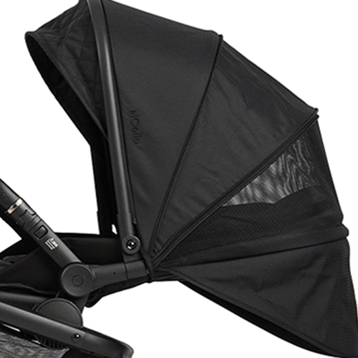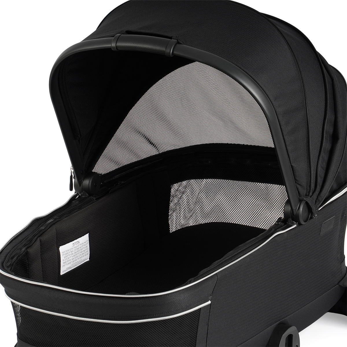 - גגון ענק ומתרחב המגן מפני השמש עם פתחי אוורור לשמירה על טמפרטורה נעימה וקשר עין רציף עם התינוק