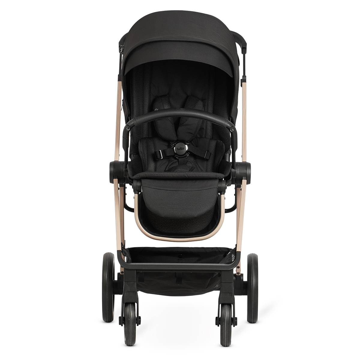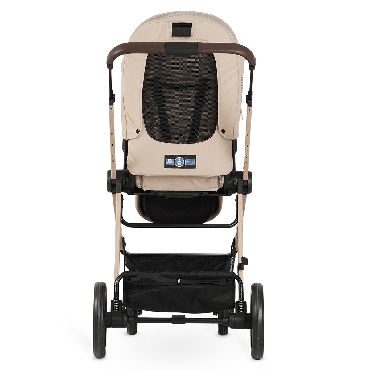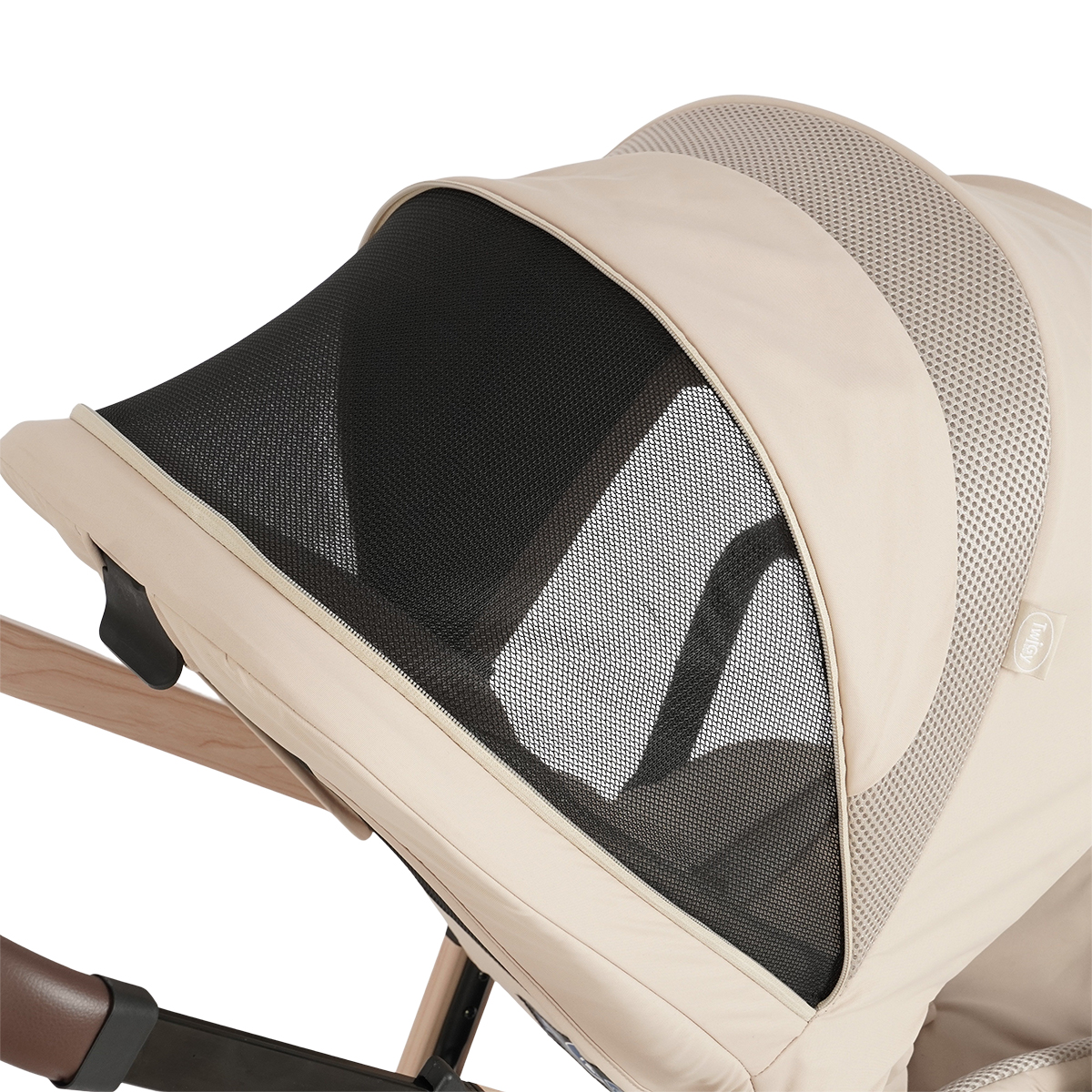 הגגון וגב המושב מצוידים בפתחי רשת רחבים לזרימת אוויר נעימה, קשר עין ישיר עם התינוק, והגנה מלאה מהשמש.