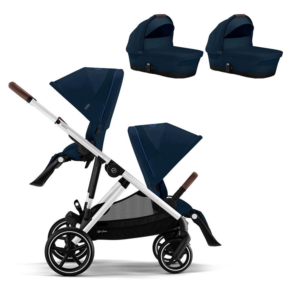 ערכת עגלת תאומים/אחים סייבקס גאזל S2 עם 2 עריסות + 2 מושבי טיולון צבע כחול – Cybex Gazelle S2