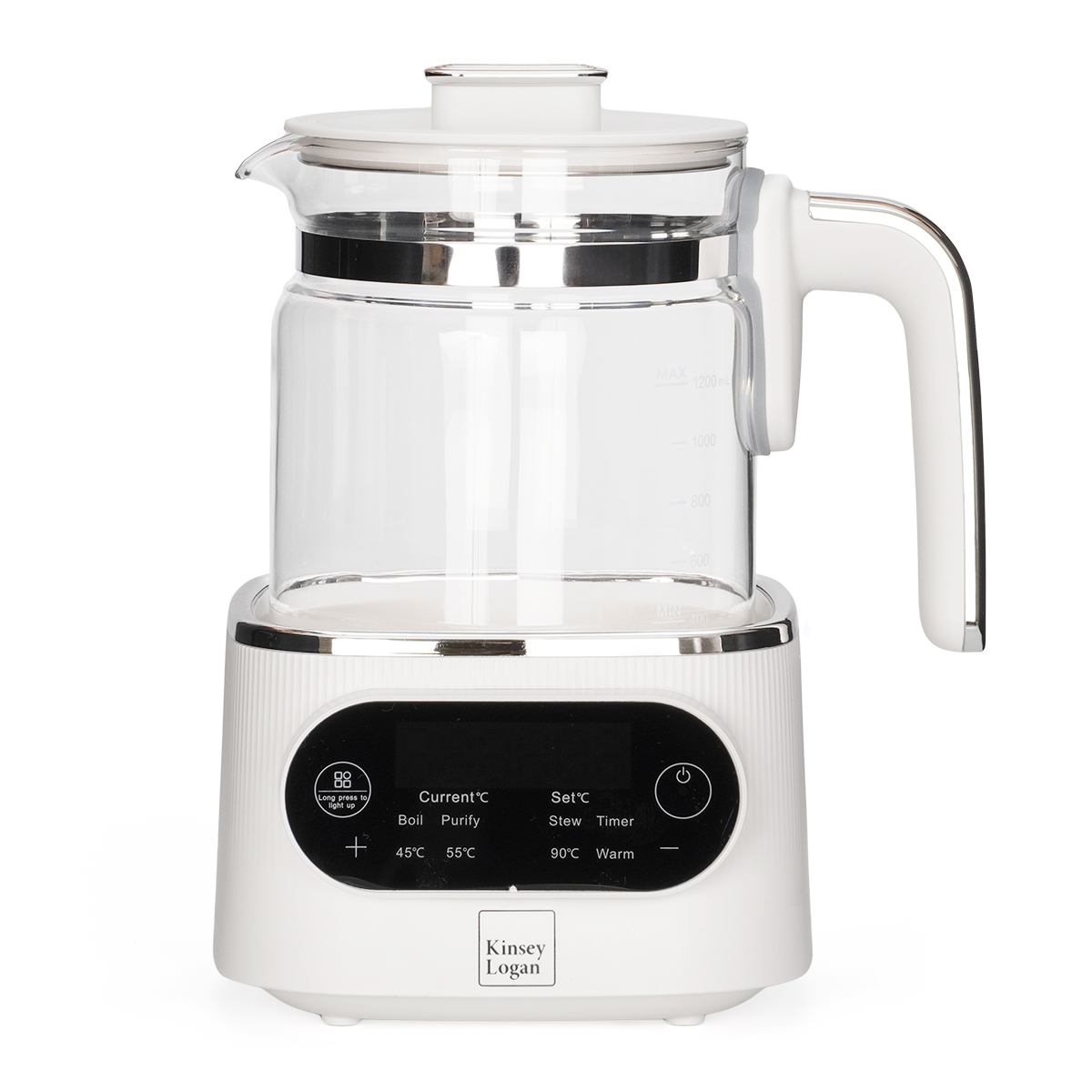 הקומקום של Kinsey Logan תוכנן תוך מחשבה על בריאות התינוק ונוחות ההורים הוא עשוי מחומרים איכותיים ובטוחים לתינוק – זכוכית בורוסיליקט, מסך מגע נוח, ותאורת לילה רכה המאפשרת תפעול נוח גם בלילה.